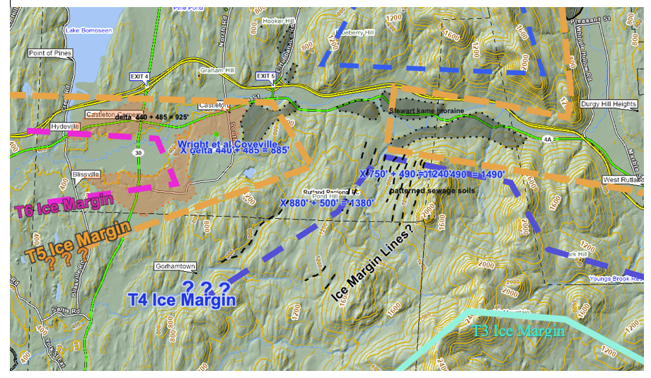 Not all “Ice Marginal Lines” identified in VCGI mapping are on the basin floor. For example, Ice Marginal Lines in the Castleton area, occur at a much higher level on the west flank of the Taconics, as shown on the following map: