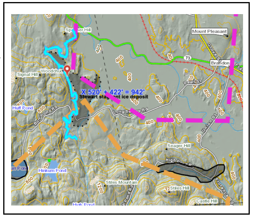 For example, the following is a screen shot of the VCGI map showing the T6 ice margin at a stagnant ice deposit west of Brandon:
