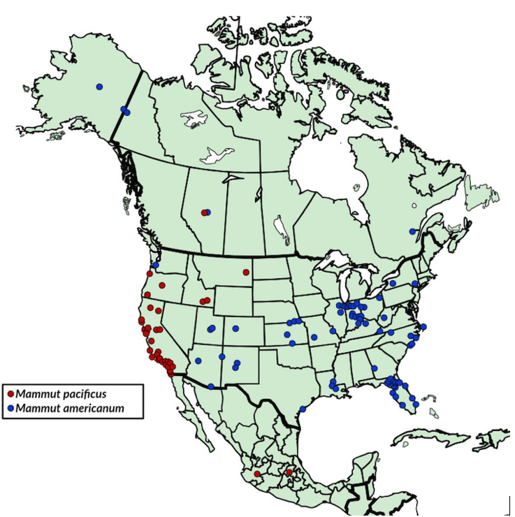 Obviously, these species were widespread. In general, mammoth diets were predominantly grasses and mastodon diets were tree vegetation.