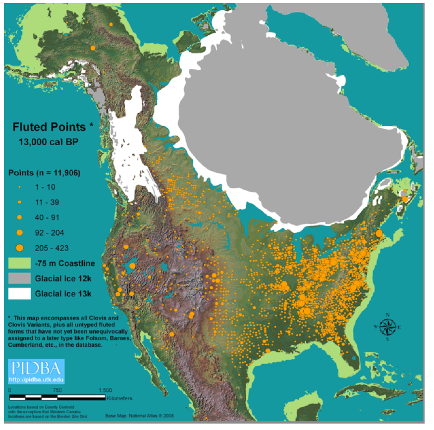 And the following ChatGPT map provides information about Paleoindian (Clovis) sites, known, presumed, or inferred to be about 13,000 years BP: