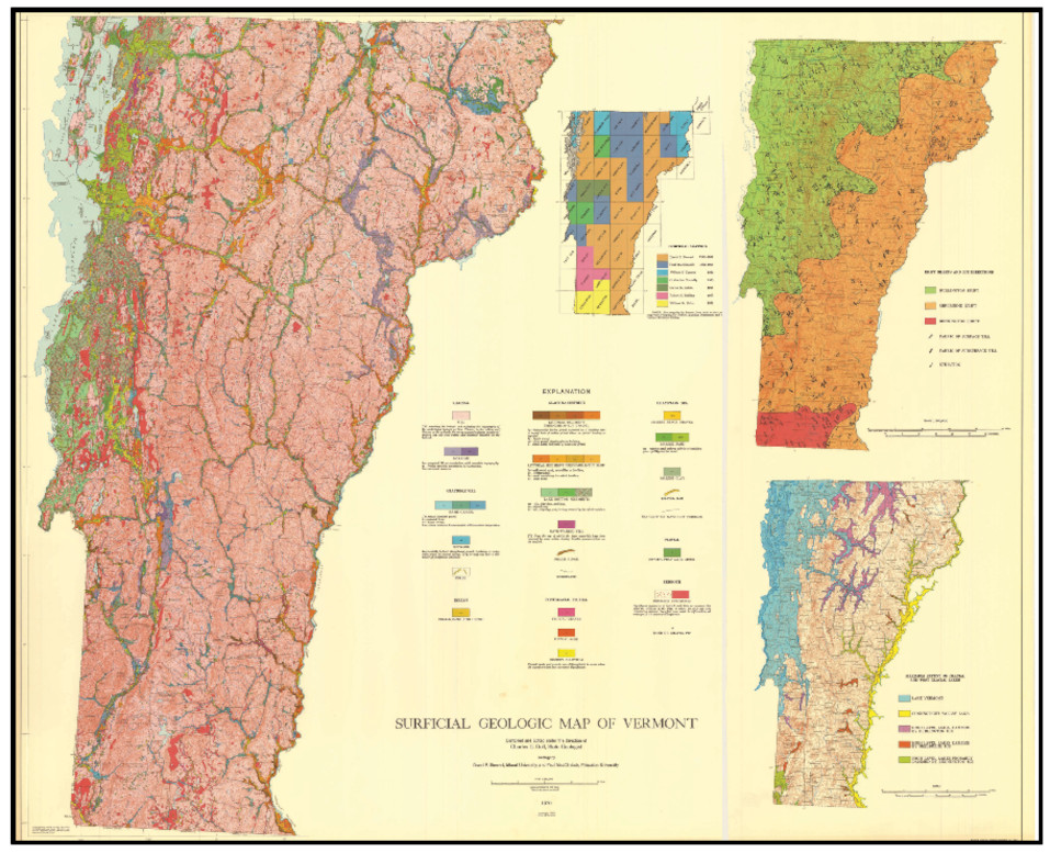 Stewart, D.P. and MacClintock, P., 1970, Surficial Geologic Map of Vermont, VT Geol. Survey.